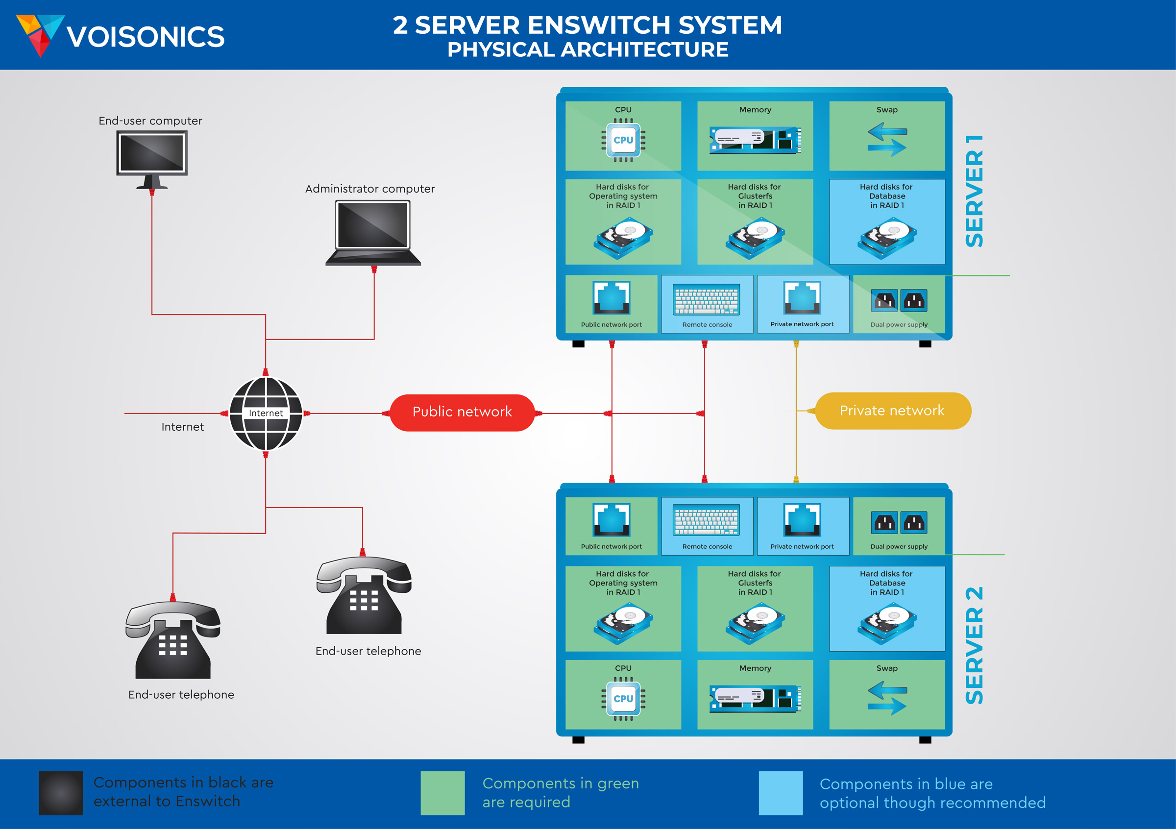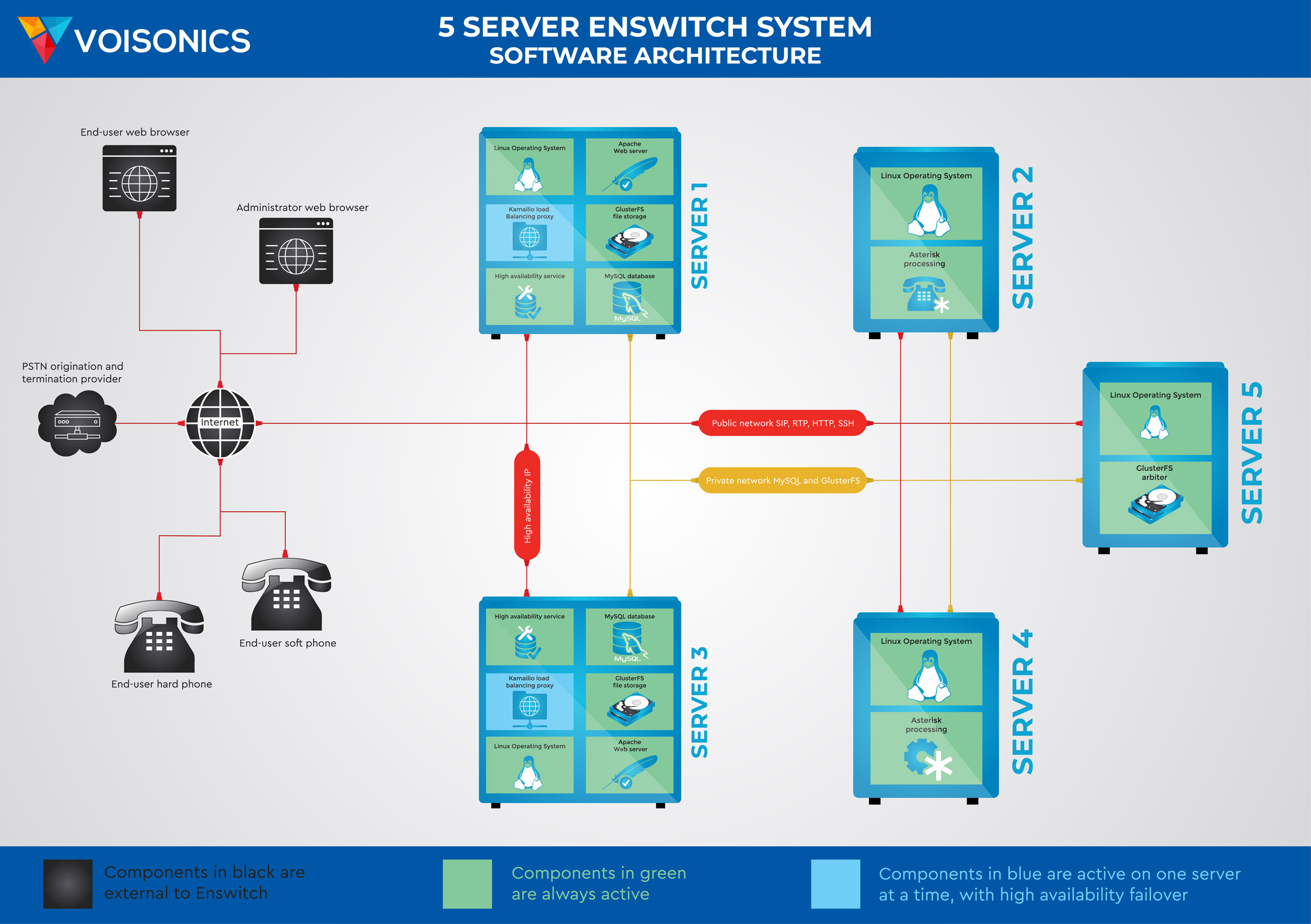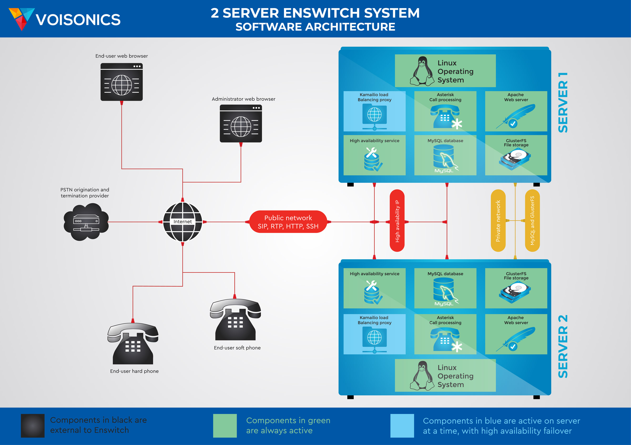 The architecture of Enswitch is designed from the ground-up for reliability and extensibility. Click on the diagrams below for an overview of key components.