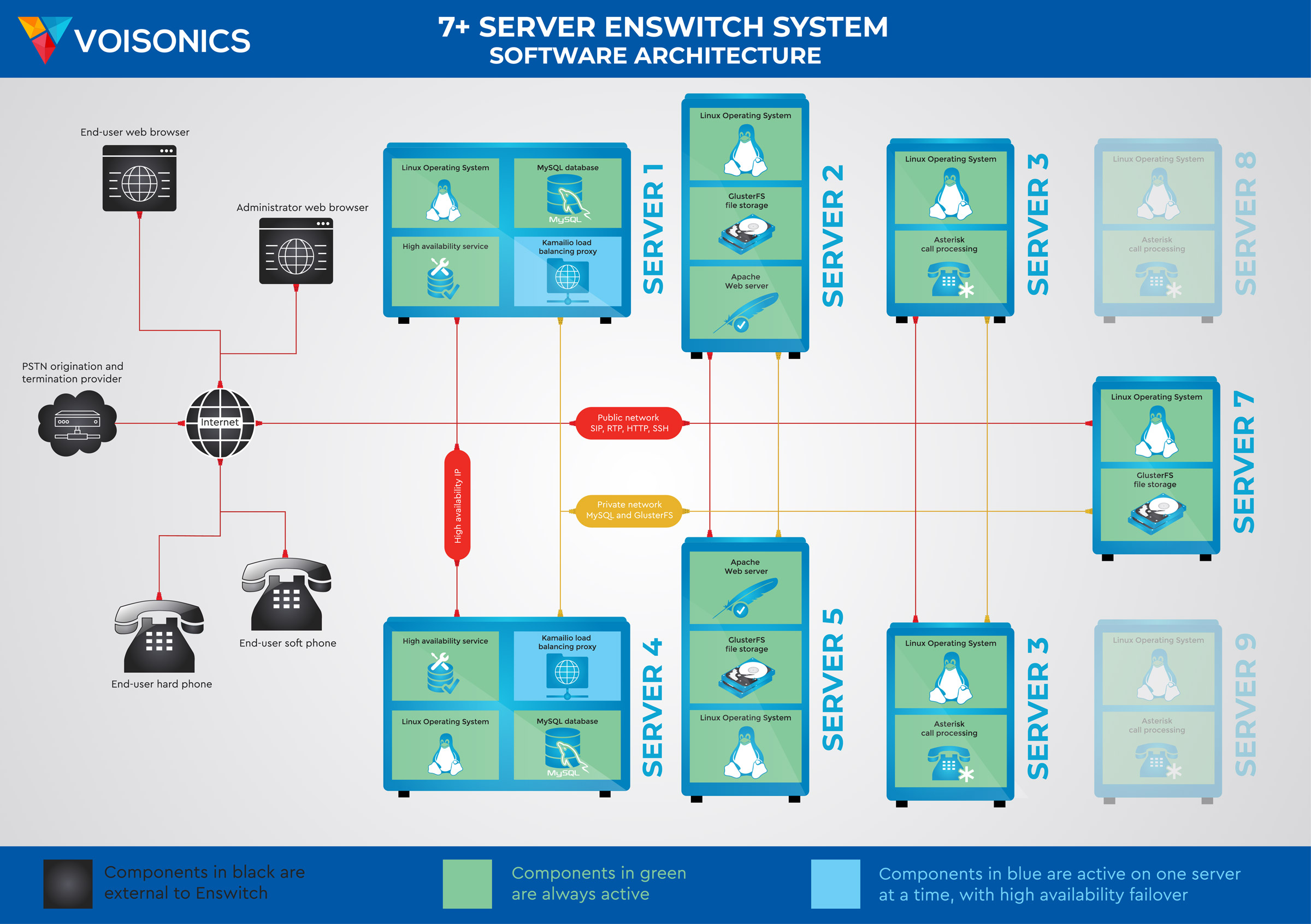 Enswitch is a powerful and flexible soft-switch for commercial carrier-grade telephony services. It can scale to tens of thousands of concurrent calls under a single, centrally managed cluster.